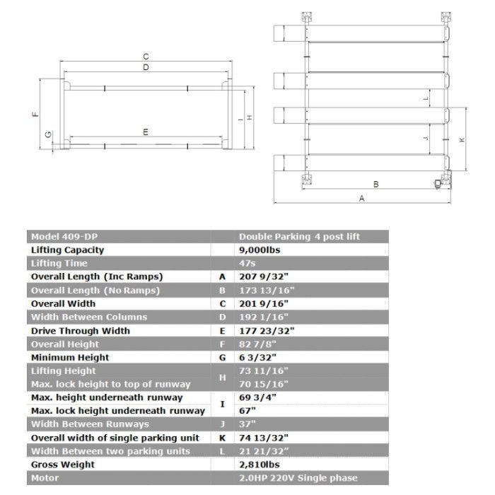 AMGO 409-DP Double Parking Four Post Lift